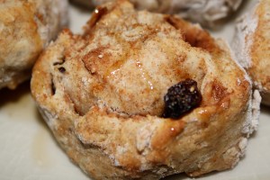 Thanks to Katie at This Chick Cooks for the original recipe for Quick, No-Rise Cinnamon Buns. This recipe immediately caught my eye because it had two of my favorite qualities in a baked good: being quick to make; and being no-rise, or yeast free. My revisions involved removing the refined sugars by replacing with maple syrup and a dash of maple sugar. Instead of making a sugary glaze topping, I drizzled a natural sweetener. My final change included adding some whole wheat flour to give a rustic texture. These buns have received rave reviews from sensitivehusband, my coworkers, my in-laws and myself. Picture a lot of nodding and happy noises as people eat – these buns really do have a positive effect on folks.